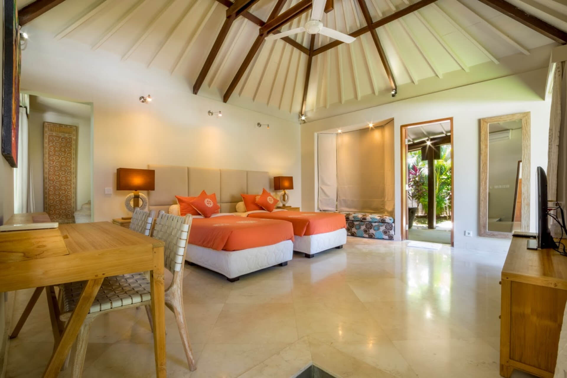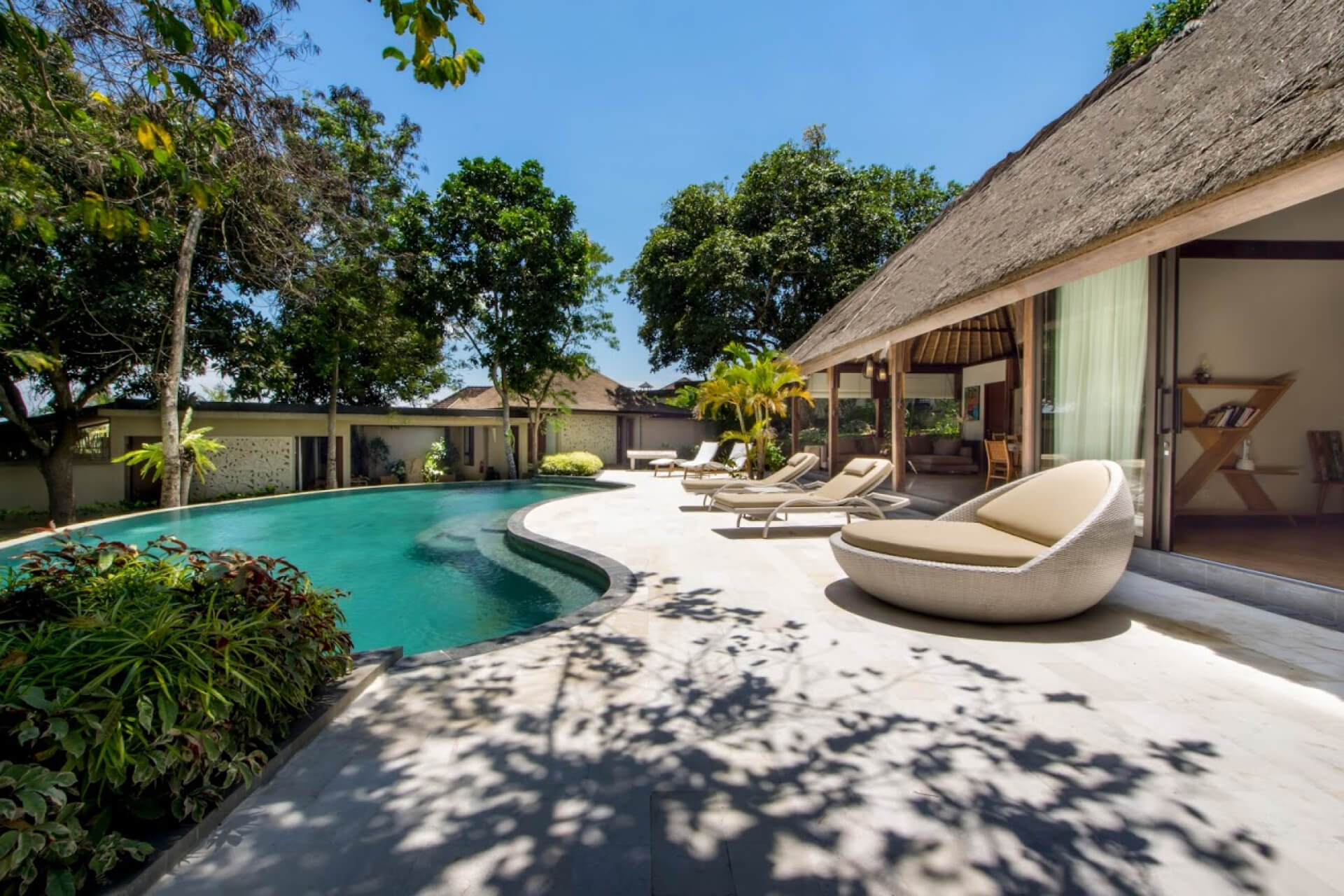 Hidden beneath towering banyan trees, this retreat blends nature with modern comfort. Spacious villas offer shaded terraces and calming views of lush greenery.